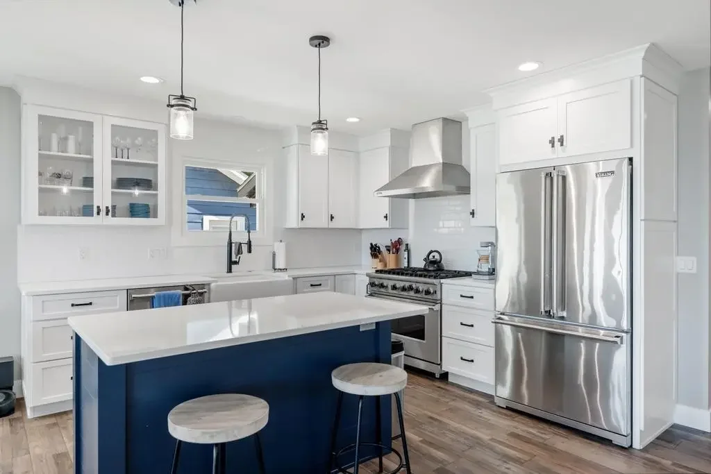 This waterfront home is located on Lake Charlevoix with sand bottom in downtown East Jordan. The three bedroom, two bath open concept layout is perfect for entertaining, while looking out across the deck and roomy lawn area to the lake. Move out to the screened in porch to enjoy a cool breeze. In the completely redesigned kitchen, you'll enjoy quartz countertops and Viking appliances with plenty of room to cook. An updated larger primary bath and a tiled shower was added after moving a wall. There is beautiful waterproof vinyl flooring throughout the main house and primary bedroom with tiled flooring in the bathrooms. A thoughtfully placed foot/doggy wash was incorporated into the utility room off the entryway. New windows in 2020, a metal seawall, Ayers crawl space water proofing, and a newer roof round out this incredible offering!